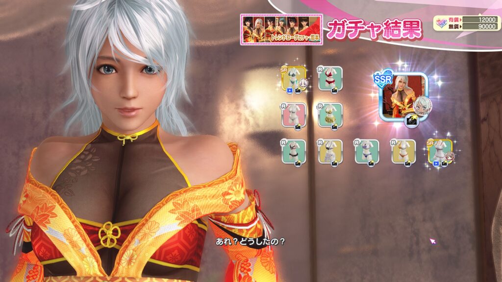 女天狗、モニカ、エリーゼ、かすみ、紅葉の設定。60連無料。